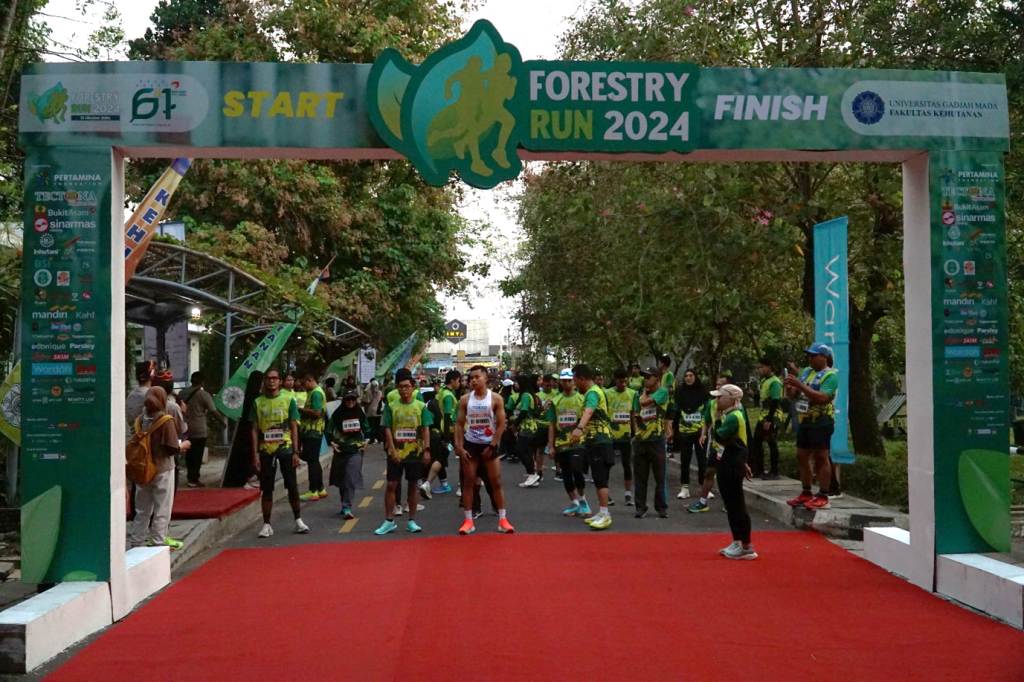 Fakultas Kehutanan Universitas Gadjah Mada telah melaksanakan kegiatan Forestry Run 2024 pada hari Minggu, 13 Oktober 2024 sebagai bagian dari rangkaian Dies Natalis ke-61 Fakultas Kehutanan UGM. Kegiatan ini diikuti oleh kurang lebih 1.850 peserta yang terdiri dari 1.450 peserta masyarakat umum, 400 peserta civitas FKT dan tamu undangan. Peserta lari telah memenuhi lingkungan fakultas sejak pukul 05.00 dini hari untuk mengikuti rangkaian acara pembuka di Start Gate. Kegiatan bertajuk Fun Run ini dibuka oleh penampilan tari dari Aliansi Mahasiswa Nusantara dilanjutkan oleh sambutan dari Wakil Rektor Bidang Perencanaan, Aset, dan Sistem Informasi, Arief Setiawan Budi Nugroho, S.T., M.Eng., Ph.D., sekaligus menjadi tanda flag off untuk kategori lari 10K sebelum kategori lari 5K ikut berlari dengan jeda waktu 10 menit.