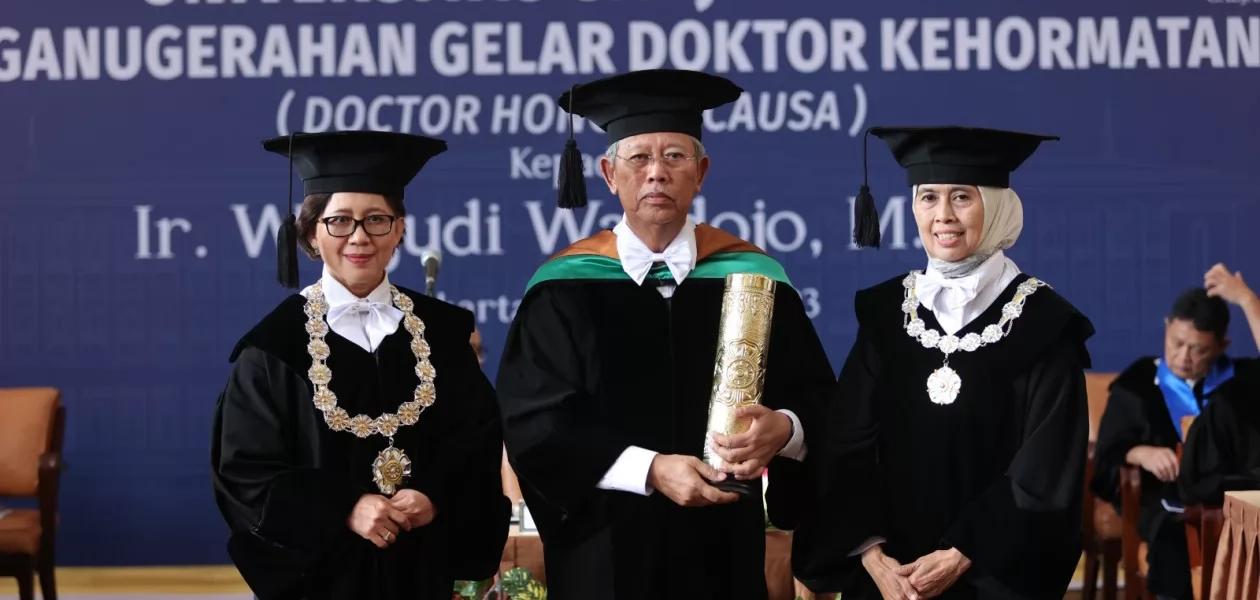 Balairung Universitas Gadjah Mada (UGM), 31 Agustus 2023, dipenuhi karangan bunga di bagian pelatarannya. Di selasar yang ikonik itu, puluhan stand pameran bertema konservasi alam ramai oleh pengunjung. Sementara di lantai dua, di ruangan Senat UGM, berlangsung sidang akademik yang penuh khidmat dipimpin oleh Rektor UGM. UGM memberikan gelar Doktor Honoris Causa (HC) dalam bidang ilmu konservasi sumber daya hutan kepada Ir. Wahjudi Wardojo, M.Sc .