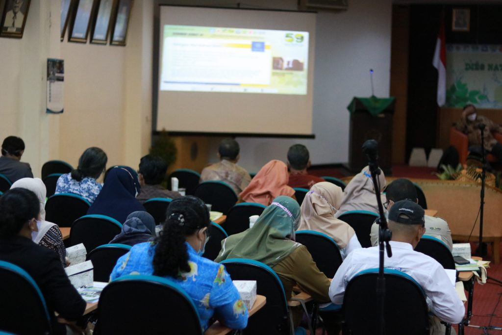 Yogyakarta, 13 September 2022, Dalam rangka rangkaian dies natalis Fakultas Kehutanan UGM yang ke -59, digelar seminar Series #1 dengan tema “Kontribusi Pemikiran Rimbawan Bulaksumur dalam Pemecahan Persoalan Kehutanan Nasional”. Bertempat di Auditorium Fakultas Kehutanan UGM, seminar yang dilaksanakan secara luring dan daring dihadiri 150 peserta luring dan 421 peserta daring, menghadirkan 4 Narasumber yaitu Prof.Dr.Ir. Mohammad Na’iem, M.Agr.Sc., Prof.Dr.Ir. San Afri Awang, M.Sc., Dr. Hero Marhaento, S.Hut., M.Si, Dr.Ir. Yustinus Suranto, M.P dan dimoderatori oleh Dr. Hery Santoso.