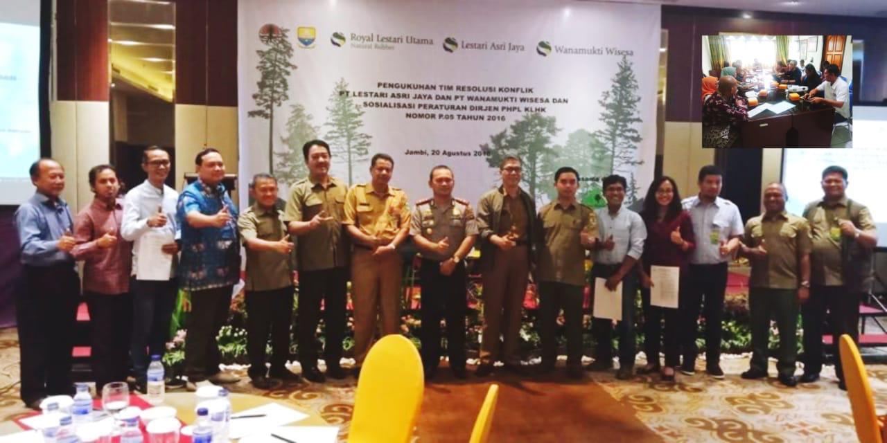 Ada baiknya berkaca pada kilas balik awal. Melalui berbagai pembahasan dan diskusi, serta serangkaian proses panjang persiapan tanpa mengenal lelah, akhirnya Tim Resolusi Konflik untuk PT. Lestari Asri Jaya dan PT. Wanamukti Wisesa berhasil dibentuk. Memperoleh legalitas SK Kepala Dinas Kehutanan Provinsi Jambi No. 263/Kpts/Dishut-5.3/XII/2018. Keberadaannya makin legitimate setelah secara resmi dikukuhkan Dirjen PHPL pada tanggal 20 Agustus 2018 di Jambi. Pasca pengukuhan pada hari yang sama, untuk kali pertama Tim Resolusi Konflik multipihak dimaksud menyelenggarakan Rapat Kerja 2018.